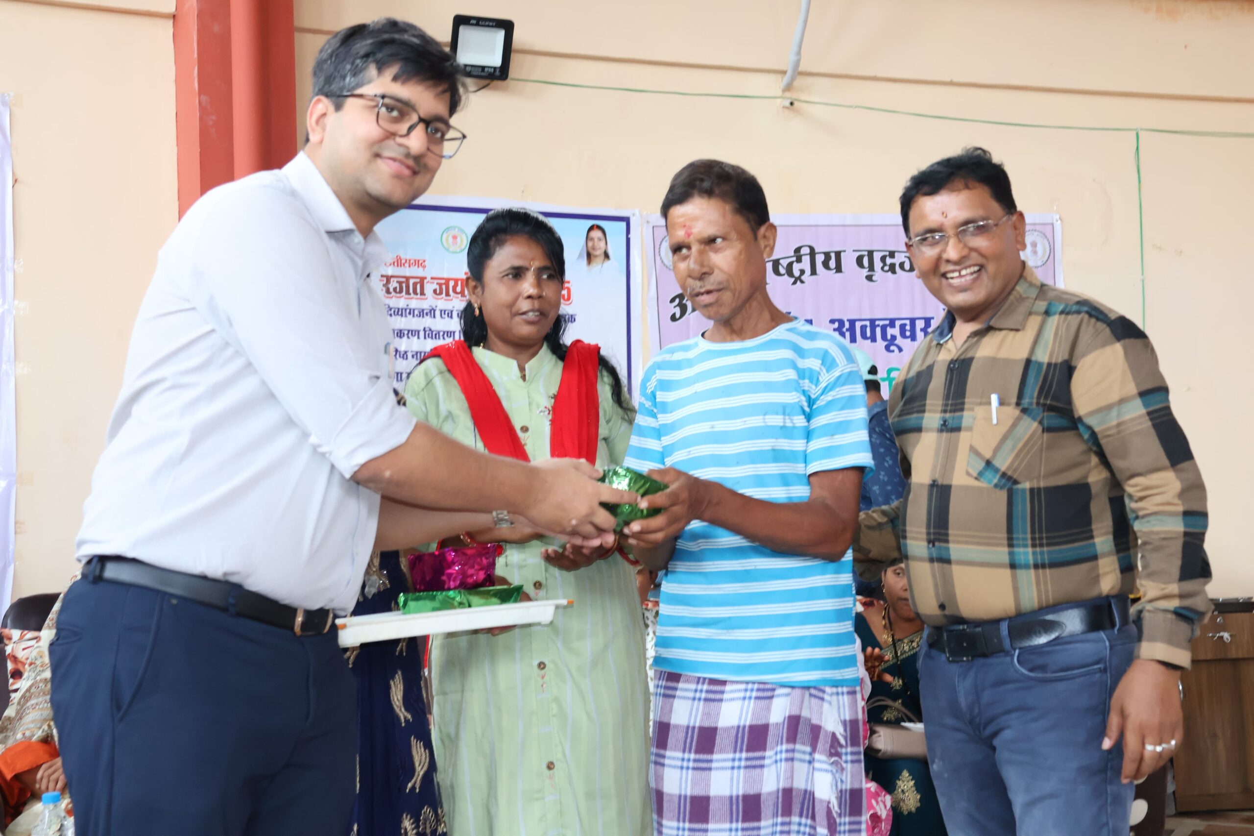बीजापुर 1 अक्टूबर 2025/ अंतर्राष्ट्रीय वृद्धजन दिवस के अवसर पर जिले के वरिष्ठ नागरिकों का भावनात्मक माहौल में सम्मान किया गया। कार्यक्रम में बड़ी संख्या में वरिष्ठजन शामिल हुए, जिन्हें साल एवं श्रीफल भेंट कर आदरपूर्वक सम्मानित किया गया। पात्रता अनुसार सहायक उपकरण एवं ऑक्सीमीटर भी प्रदान किए गए। साथ ही स्वास्थ्य परीक्षण शिविर आयोजित कर वरिष्ठजनों के स्वास्थ्य की जांच की गई और उन्हें स्वस्थ जीवन के लिए प्रोत्साहित किया गया।