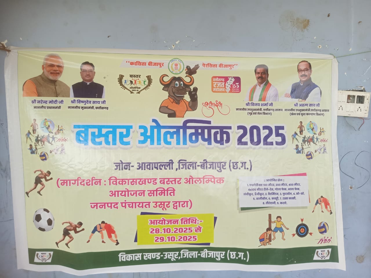 छत्तीसगढ़ शासन की पहल पर आयोजित इस महोत्सव में खेलों के साथ-साथ लोक संस्कृति और पारंपरिक खेलों का संगम देखने को मिल रहा है। बस्तर ओलंपिक पिछले वर्ष की भांति इस वर्ष भी चार चरणों — जोन, ब्लॉक, जिला एवं संभाग स्तर — पर आयोजित किया जा रहा है। बीजापुर जिले में जोन स्तरीय प्रतियोगिताओं का आयोजन भैरमगढ़ ब्लॉक के नेलसनार, भैरमगढ़, गंगालूर, नैमेड़ एवं आवापल्ली में किया जा रहा है। इन जोन स्तरीय प्रतियोगिताओं से चयनित खिलाड़ी आगामी विकासखंड स्तरीय प्रतियोगिताओं में भाग लेंगे। इस वर्ष बस्तर ओलंपिक को लेकर खिलाड़ियों में जबरदस्त उत्साह देखने को मिल रहा है। जिले भर से कुल 43,828 खिलाड़ियों ने विभिन्न खेल विधाओं में पंजीयन कराया है, जो इस आयोजन की लोकप्रियता और व्यापक जनभागीदारी को दर्शाता है। जोन स्तरीय उद्घाटन समारोह में स्थानीय जनप्रतिनिधियों, अधिकारीगण, शिक्षकों एवं खेल प्रेमियों ने उपस्थित रहकर खिलाड़ियों का उत्साहवर्धन किया। सभी ने इस आयोजन को खेलों के माध्यम से समाज में भाईचारे, अनुशासन और सकारात्मक ऊर्जा को बढ़ाने वाला बताया। बस्तर ओलंपिक में इस वर्ष भी पारंपरिक खेल जैसे कबड्डी, खो-खो, गिल्ली-डंडा, रस्साकशी, लंबी दौड़, लंबी कूद,फुगड़ी, जैसे पारंपरिक नृत्य एवं लोकगीत प्रतियोगिताएं शामिल हैं। खेल मैदानों पर खिलाड़ियों का जोश और उत्साह पूरे आयोजन को उत्सव का रूप दे रहा है।