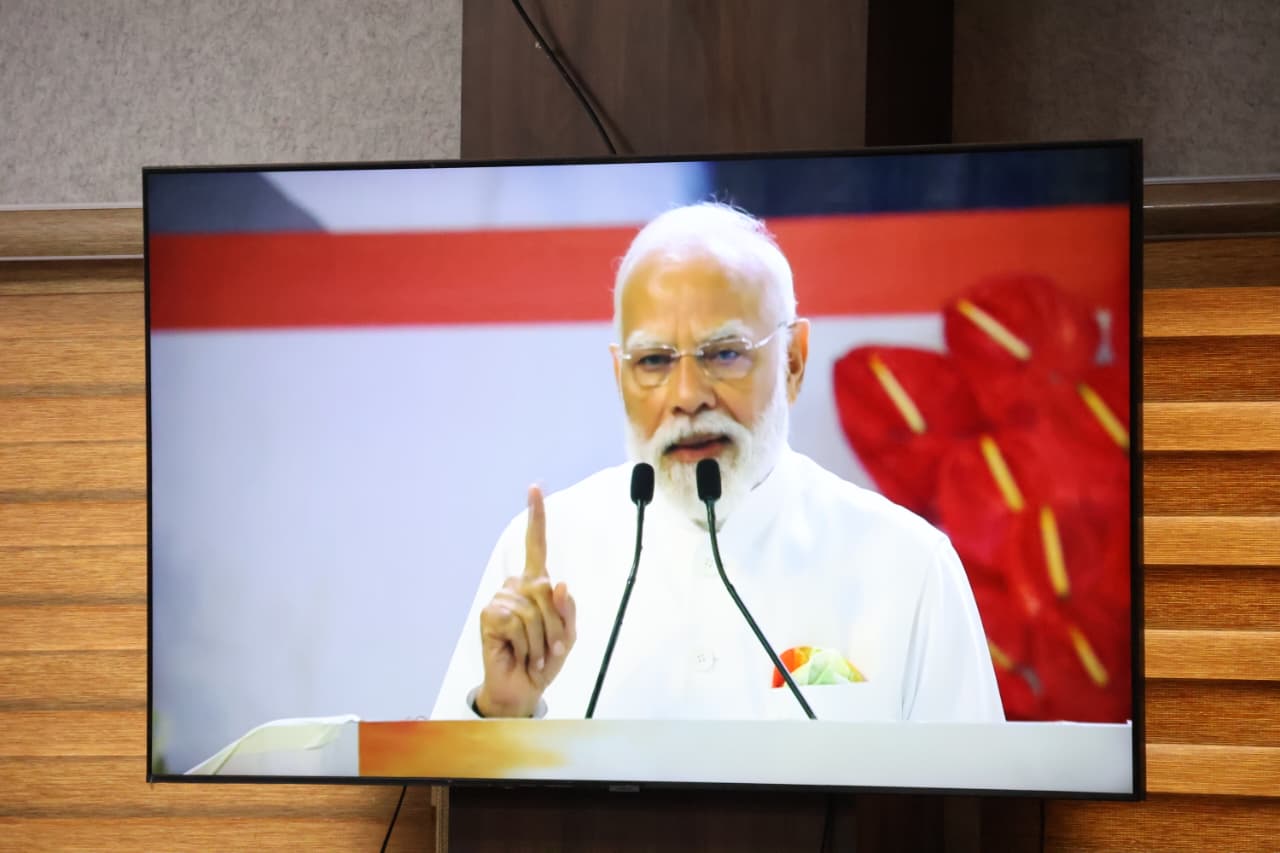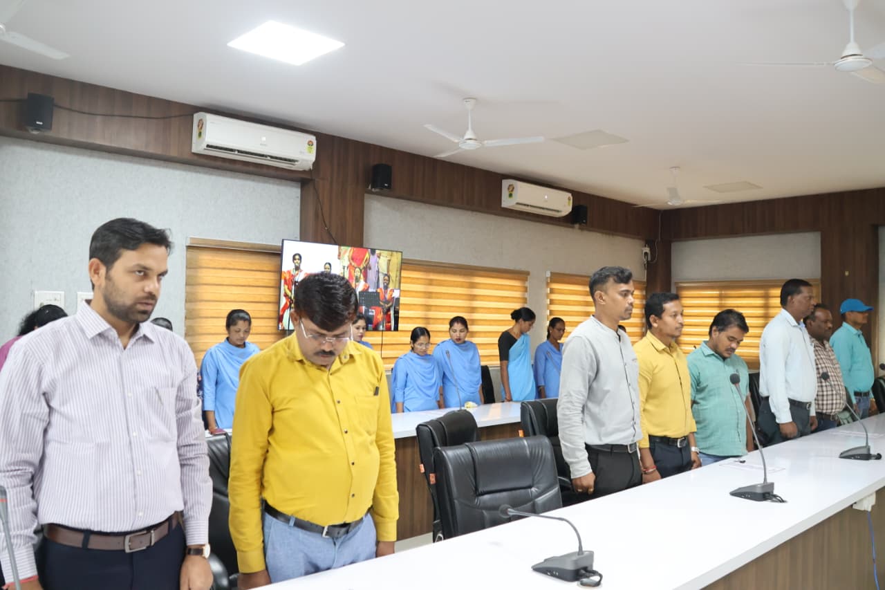 बीजापुर 07 नवम्बर 2025। वन्दे मातरम् की 150वीं वर्षगांठ के अवसर पर जिला कार्यालय स्थित इन्द्रावती सभाकक्ष में एक गरिमामय एवं उत्साहपूर्ण कार्यक्रम का आयोजन किया गया। इस अवसर पर नगरपालिका अध्यक्ष श्रीमती गीता सोम पुजारी, कलेक्टर संबित मिश्रा, जी. वेंकट, घासी राम नाग, श्रीनिवास मुदलियार सहित नगरपालिका के पार्षदगण, जनप्रतिनिधि, अधिकारी एवं कर्मचारी बड़ी संख्या में उपस्थित रहे।